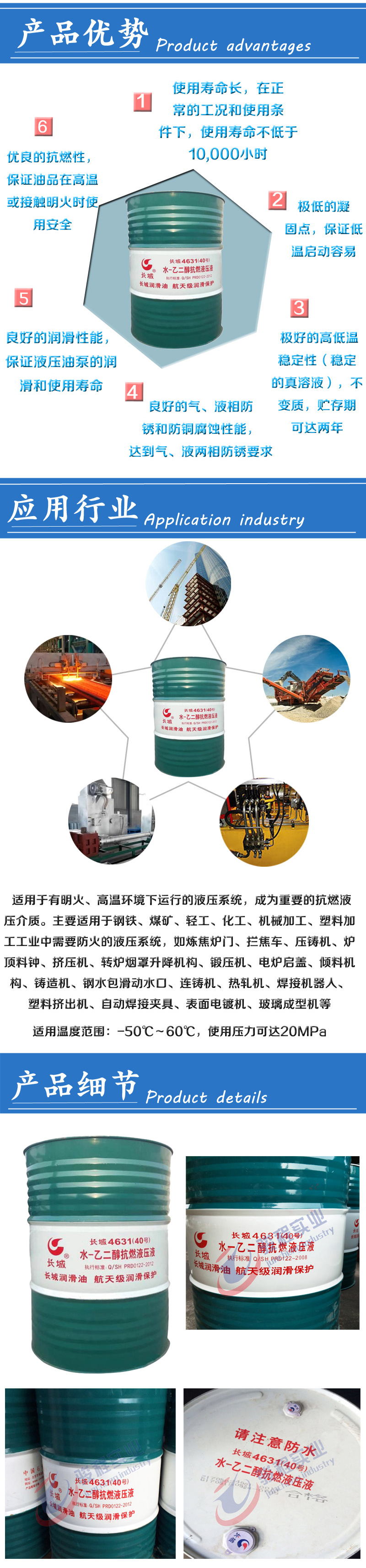 - 长城牌4632酯型难燃液压油是以特定结构的合成油为基础油,并加入抗氧、防腐蚀和润滑等添加剂制成,属于可生物降解的新一代绿色润滑剂。
