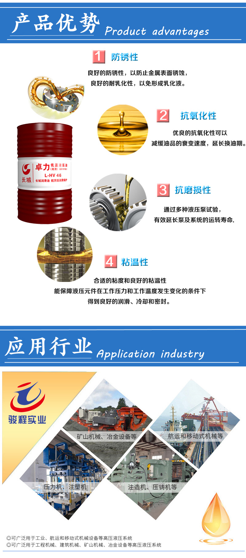 ◎ 优异的抗磨性能和防锈、防腐性能,为液压设备提供有效防护